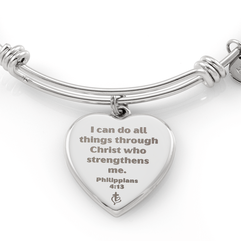 Create a timeless keepsake with our Engraved Luxury Heart Bangle. Crafted from high-quality stainless steel, this piece can be customized on the back with up to 20 characters in our signature Tangerine font.