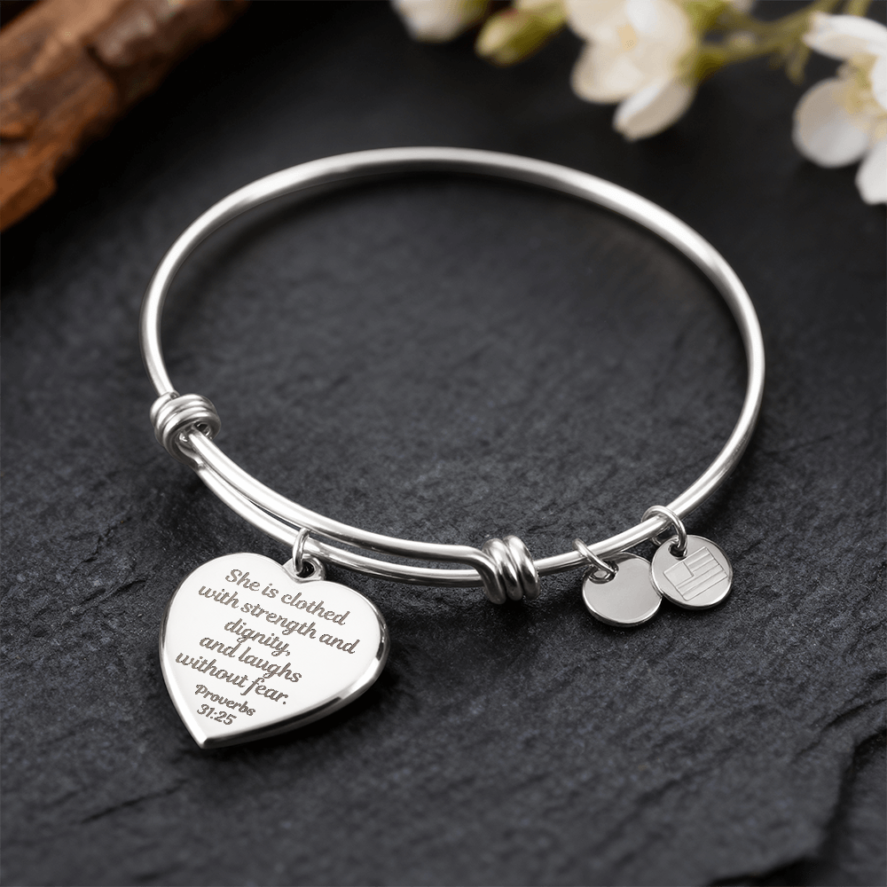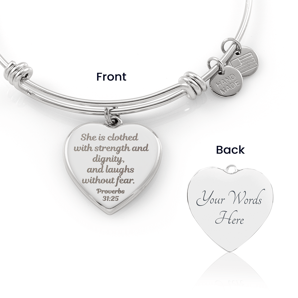 Create a timeless keepsake with our Engraved Luxury Heart Bangle. Crafted from high-quality stainless steel, this piece can be customized on the back with up to 20 characters in our signature Tangerine font.